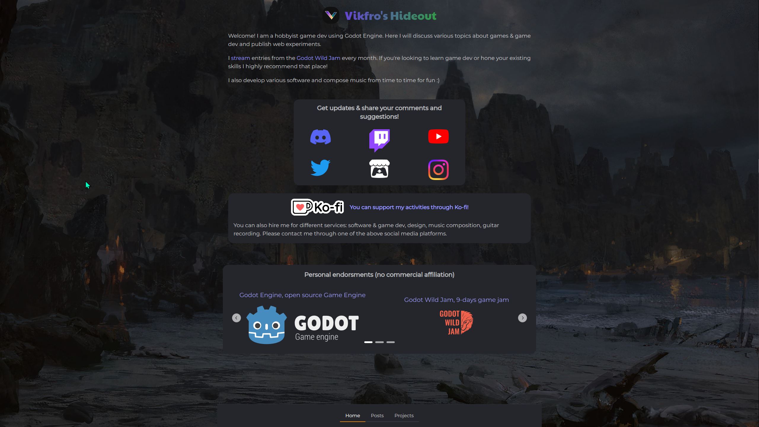 Vikfro is a small indie games streamer and content creator. He needed a website to gather his social media links and a blog to write programming tutorials and video game reviews.